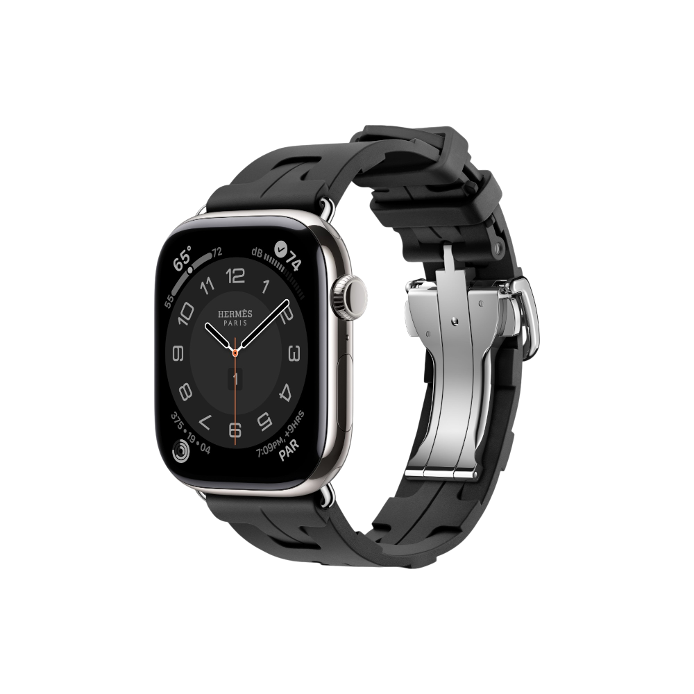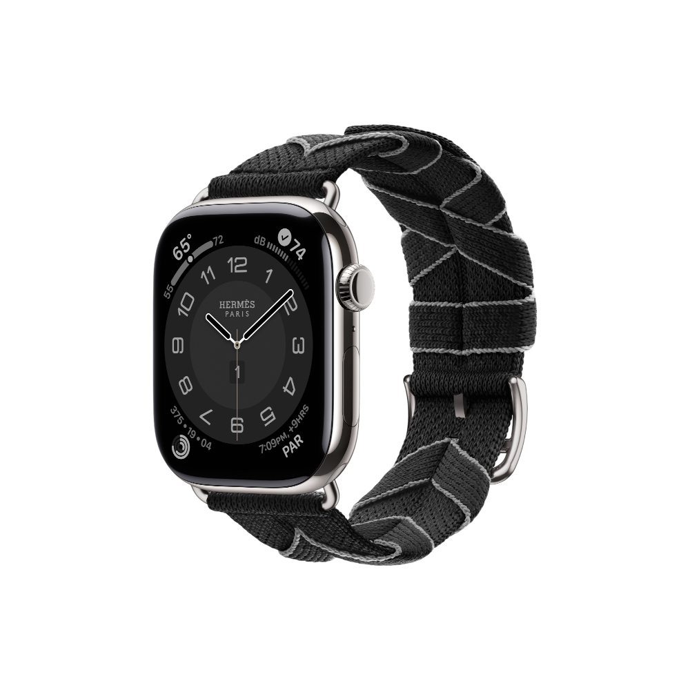 Apple Watch Hermès Series 10 GPS + Cellular, 46mm Silver Titanium Case with Noir/Gris Bridon Single Tour, Onesize