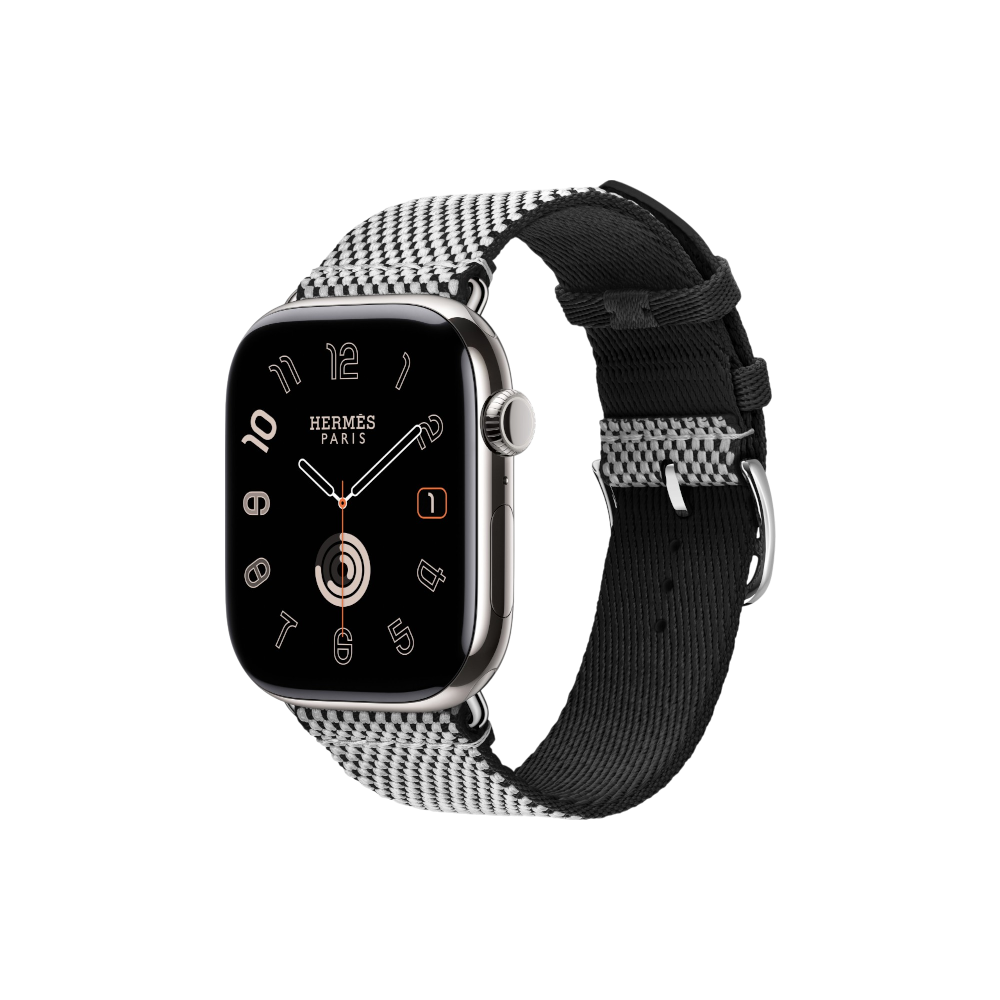 Apple Watch Hermès Series 10 GPS + Cellular, 46mm Silver Titanium Case with Noir/Écru Toile H Single Tour, Onesize