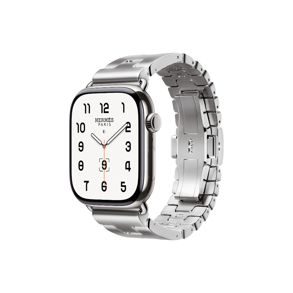 Apple Watch Hermès Series 10 GPS + Cellular, 42mm Silver Titanium Case with Satiné Grand H - Large