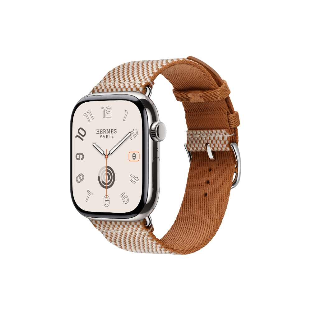 Apple Watch Hermès Series 10 GPS + Cellular, 46mm Silver Titanium Case with Gold/Écru Toile H Single Tour, Onesize