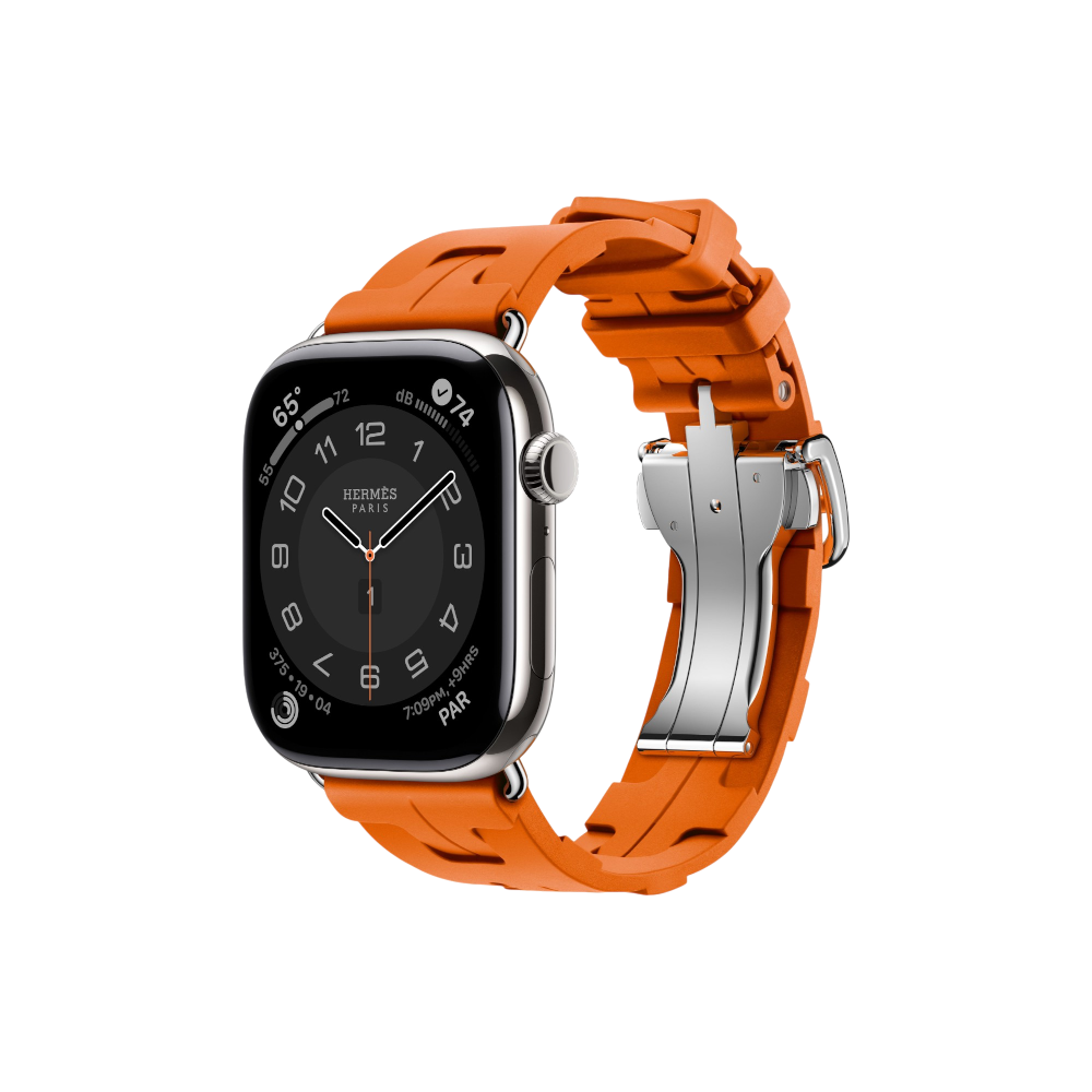 Apple Watch Hermès Series 10 GPS + Cellular, 46mm Silver Titanium Case with Orange Kilim Single Tour, Onesize