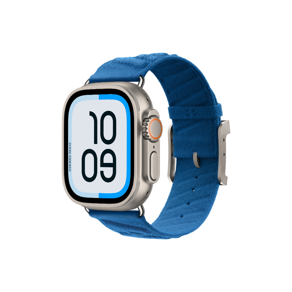 Apple Watch Hermès Ultra 2 GPS + Cellular, 49mm Natural Titanium Case with Bleu Hydra En Mer