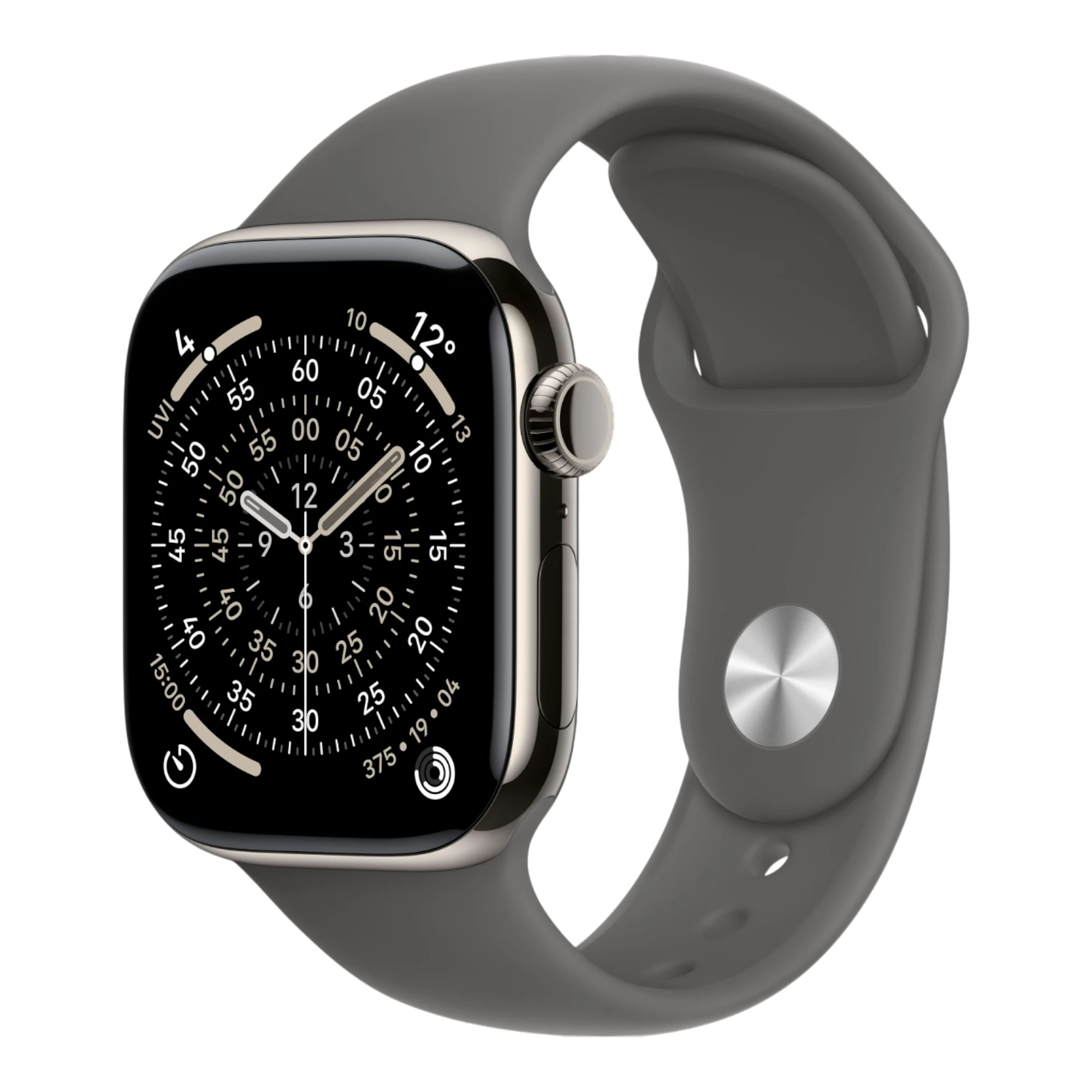 Apple Watch Series 11 GPS + Cellular, 42mm Natural Titanium Case with Stone Gray Sport Band - M/L